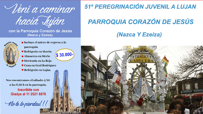 La parroquia Corazón de Jesús (Nazca y Ezeiza) a cargo del Párroco Fernando Hanno invita a los vecinos a caminar junto a la virgen a Lujan.